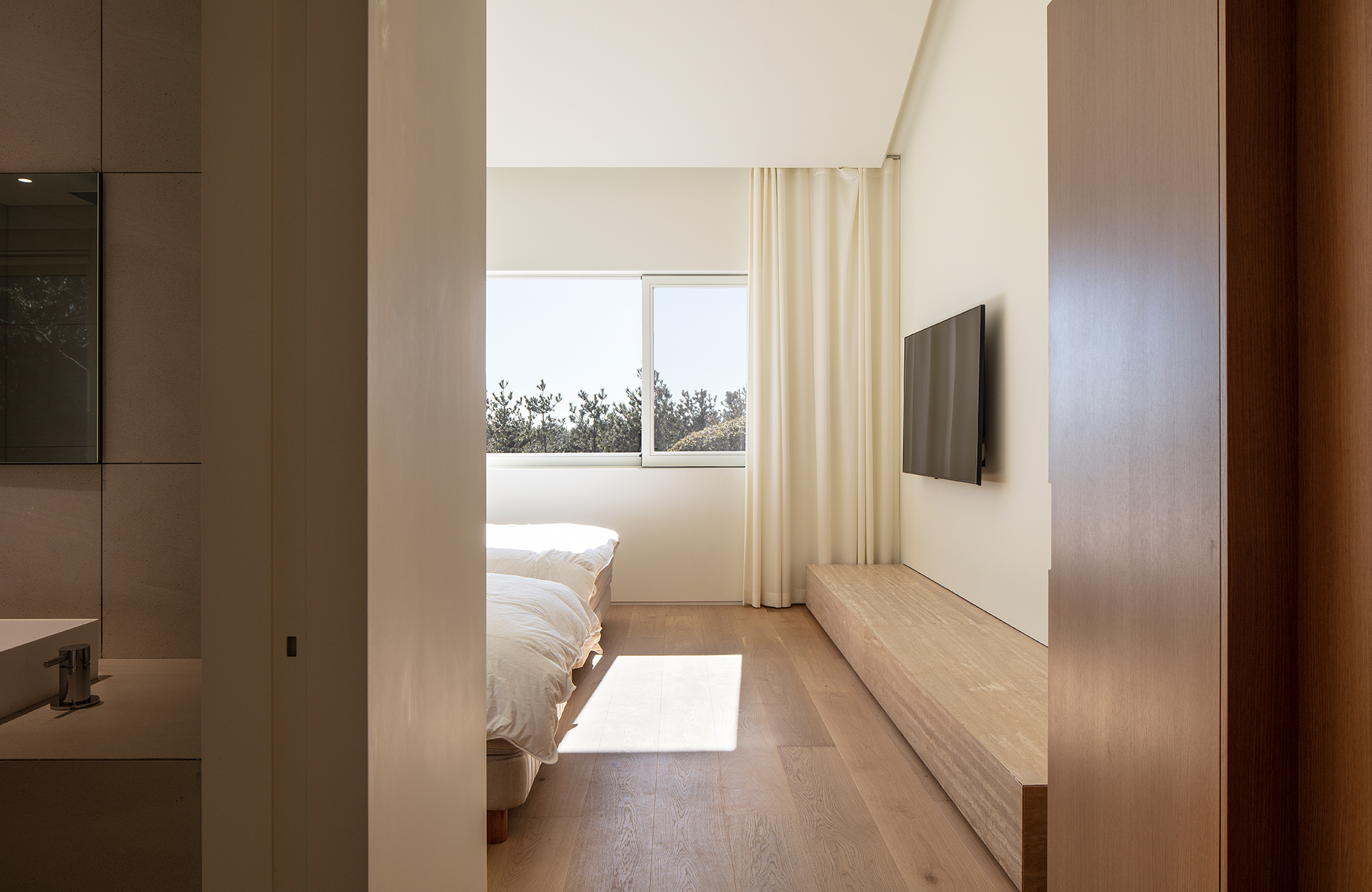 우리가 바라는 진정한 휴식이란 무엇일까. 일상적인 공간처럼 보이지만 비일상에서 자신의 시간을 온전히 보내는데 거스름이 없도록 하는 것. 바쁜 일상의 루틴이 연속되게 만드는 것들을 비우기로 한 것이다. 그래서 우리는 불필요한 공간들을 과감히 삭제하였다. 예를 들어 기존 건축물에서 2층의 다락으로 바닥의 면적을 넓게 활용했던 부분, 내부로 유입하여 사용되었던 화단, 수납으로 채워지는 벽면, 기능으로 필요한 손잡이, 조명 등이 그것이다. 무의식적으로 일상을 떠올려 우리를 번잡스럽게 만드는 모든 것들이 최대한 비워주었다.